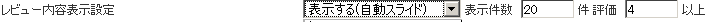 ![]() レビュー内容表示エリアの設定 (表示なしも選択できます) |