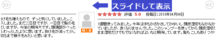 訪問者の目を引き 説得力のある購入者コメントで購買意欲をUP!! |